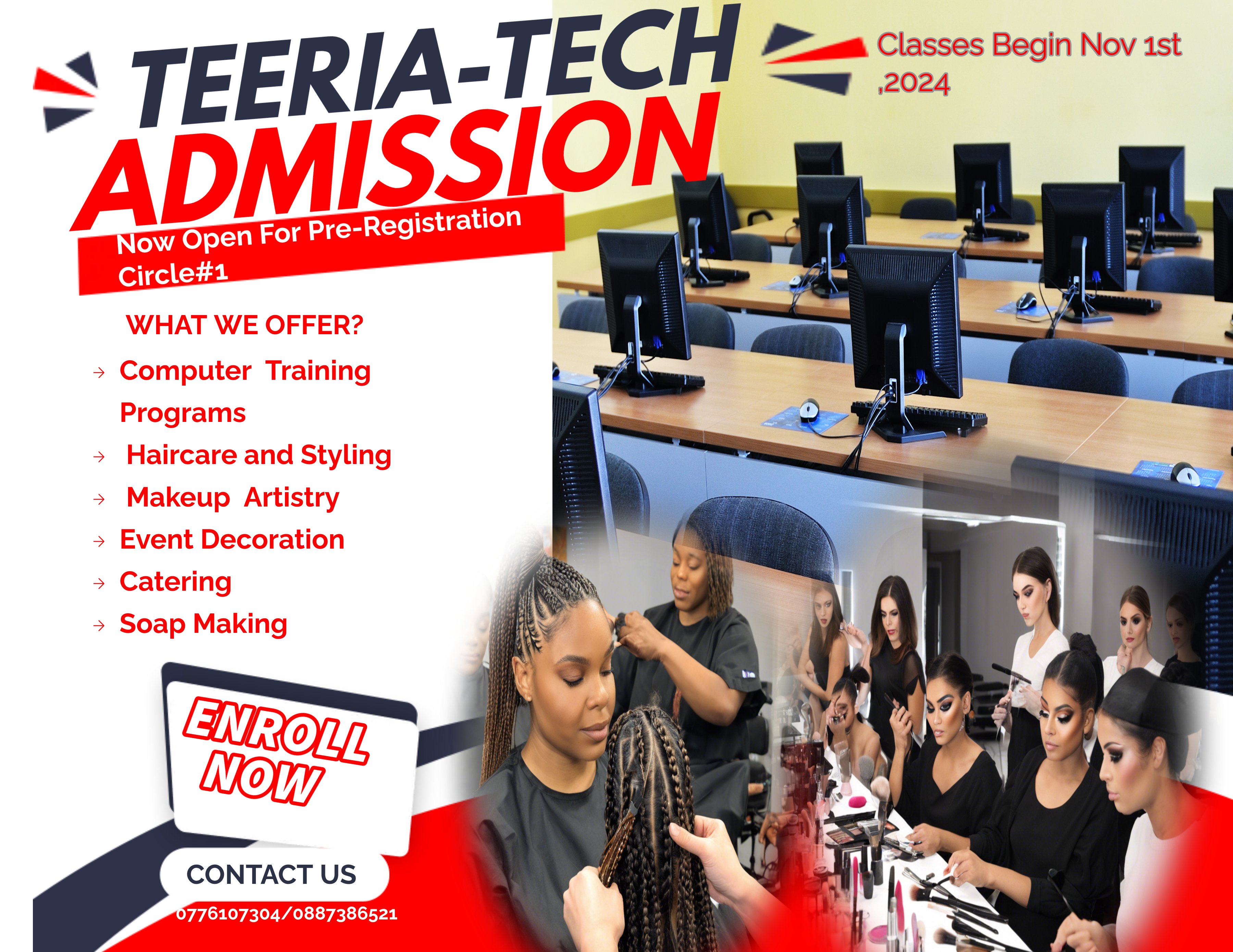 Whether you are looking to start a new career, enhance your skills, or pursue a passion, Teeria-Tech is here to help you succeed. Explore our programs, meet our faculty, and discover how we can support you in achieving your goals.Thank you for considering Teeria Technical Training Institute of Technology. We look forward to welcoming you to our community of learners!